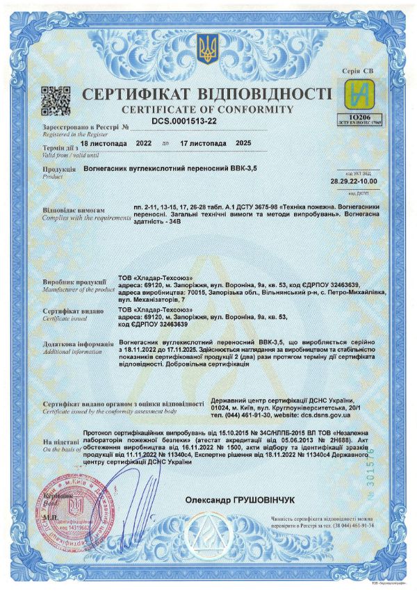 Вогнегасники для Сховищ Вуглекислотні вогнегасники