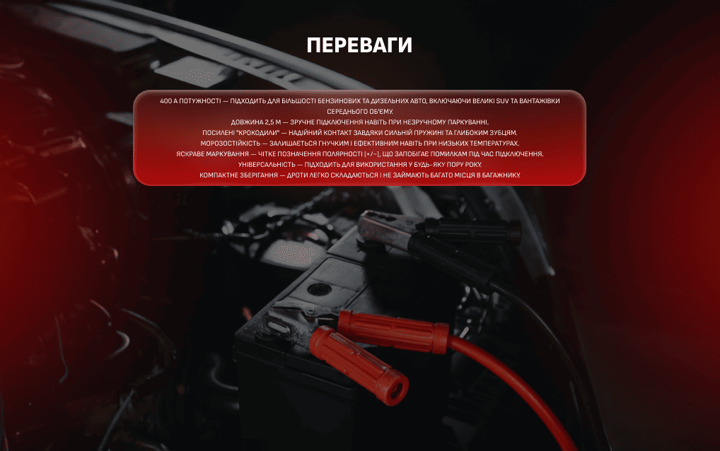 Дроти пускові Штурмовик 400 А - Ваш надійний помічник у дорозі.